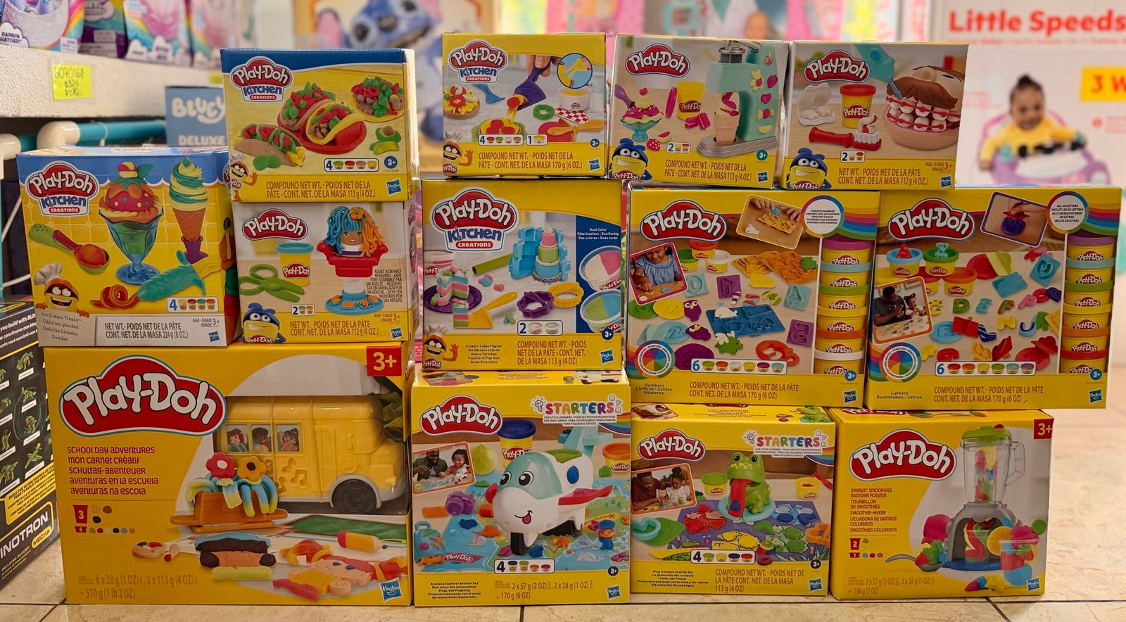 PAQUETE PLAY DOH 13 PIEZAS $1,669$1,669 MXN Incluye 17 piezas de play Doh 3 disponibles - PAQUETE PLAY DOH 13 PIEZAS $1,669 cantidad + Añadir al carrito Ir a tienda Categorías: General, Paquetes Description Productos relacionados Oferta TRANSFORMER MV7 ROLEPLAY CONVERTING MASCARA F4121 $330 Original price was: $330.$240Current price is: $240. MXN Añadir al carrito Dar un vistazo Oferta NERF ELITE 2.0 PROSPECT QS 4 $130 Original price was: $130.$100Current price is: $100. MXN Añadir al carrito Dar un vistazo PLAY DOH MINI T REX $120 MXN Leer más AgotadoDar un vistazo CAJA CON 24 MLP BLIND BAGS $360 MXN Añadir al carrito Dar un vistazo